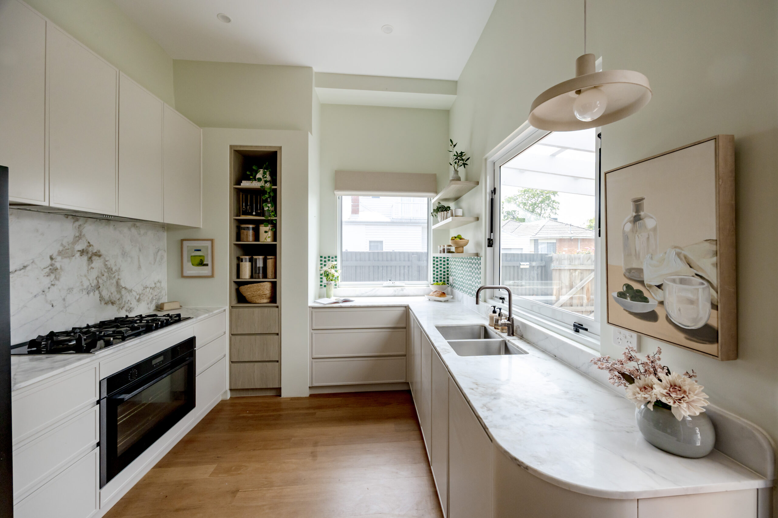 This kitchen and laundry were designed for a wonderful family who came to me with a vision that blended Scandinavian warmth, eclectic charm, and the character of their home’s original heritage. Drawing inspiration from the client’s Swedish roots and their nostalgic memories of cosy 80s–90s interiors and classic Ikea pieces, the goal was to create spaces that felt welcoming, lived-in, and unmistakably “theirs.”