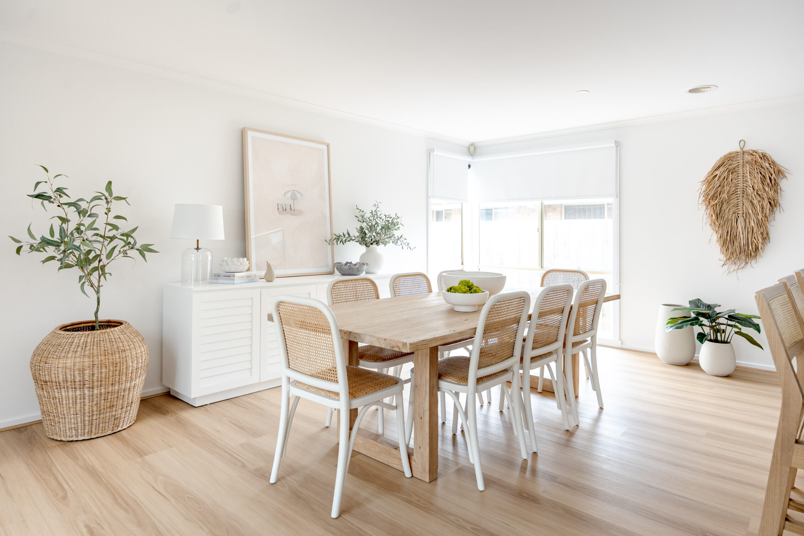For this project, my client envisioned a home that felt light, airy, and effortlessly uplifting—an inviting blend of modern, contemporary, and Hamptons-inspired style. She gravitated toward soft tones, natural textures, and bright, open spaces, and wanted her living and dining areas to feel calm, cohesive, and beautifully refreshed.